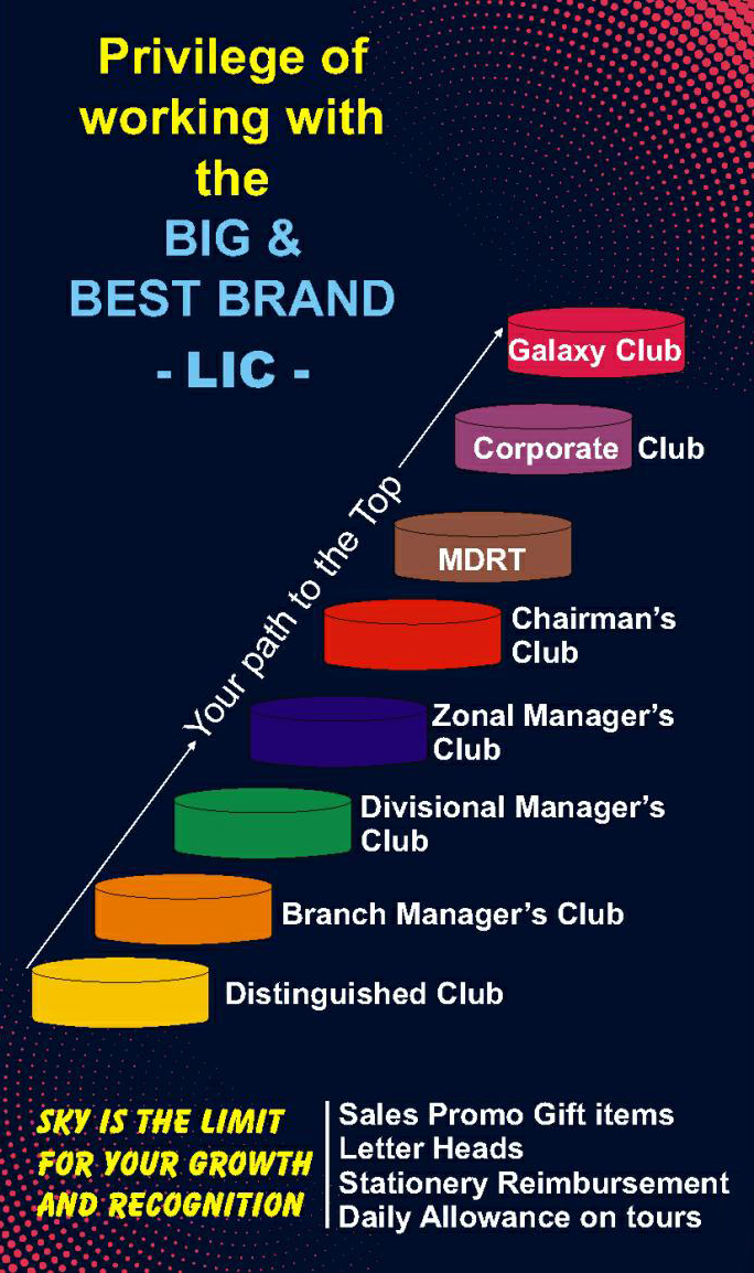A Club Member Agent is eligible for Interest free advance of Car, reduced Interest for Home Loan, Office maintenance Allowance, Furniture Allowance, Festival Advance, Mobile & Land line Bill reimbursement & various other facilities.
